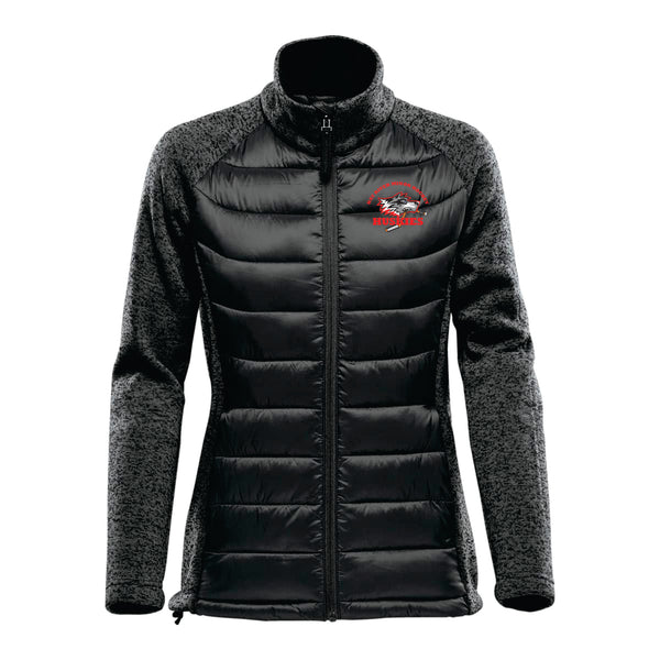 Huskies Logo left chest, embroidered.