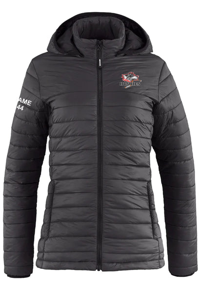 37 gsm – 1.1 oz./yd2 – 2 oz./lin. yd 100% nylon taffeta with water repellent finish. Insulation: lightweight 100% recycled polyester. YKK front zipper. Zippered side entry pockets. Zipper detachable Hood. Black elastic binding at hood opening and cuff.
