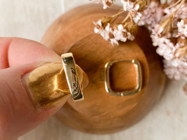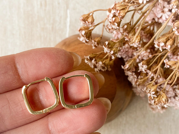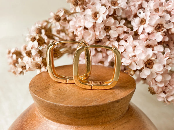 A modern square hoop that is gold plated and ready for everyday wear. Want to mix it up! Go square!