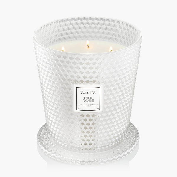 Voluspa's unique coconut wax blend is housed in a 114 oz. embossed glass vessel and topped with a matching lid that keeps the candle dust-free when not in use. Our five wicks allow you to enjoy fragrance throw for 200 hours. Our candles are handcrafted in the United States and feature our proprietary, clean-burning coconut wax blend and natural wicks. Our products are free of phthalates, parabens and sulfates and are never tested on animals. Up-cycle this best seller into a keepsake after the last burn.