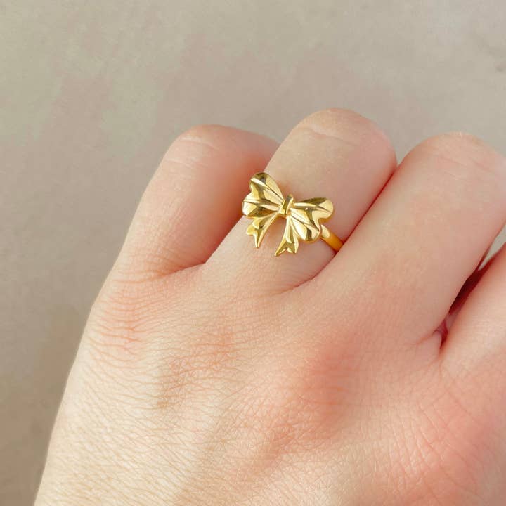 Charming dainty bow ring in stainless steel with 18k gold PVD Plated finish. Tarnish-free and waterproof!