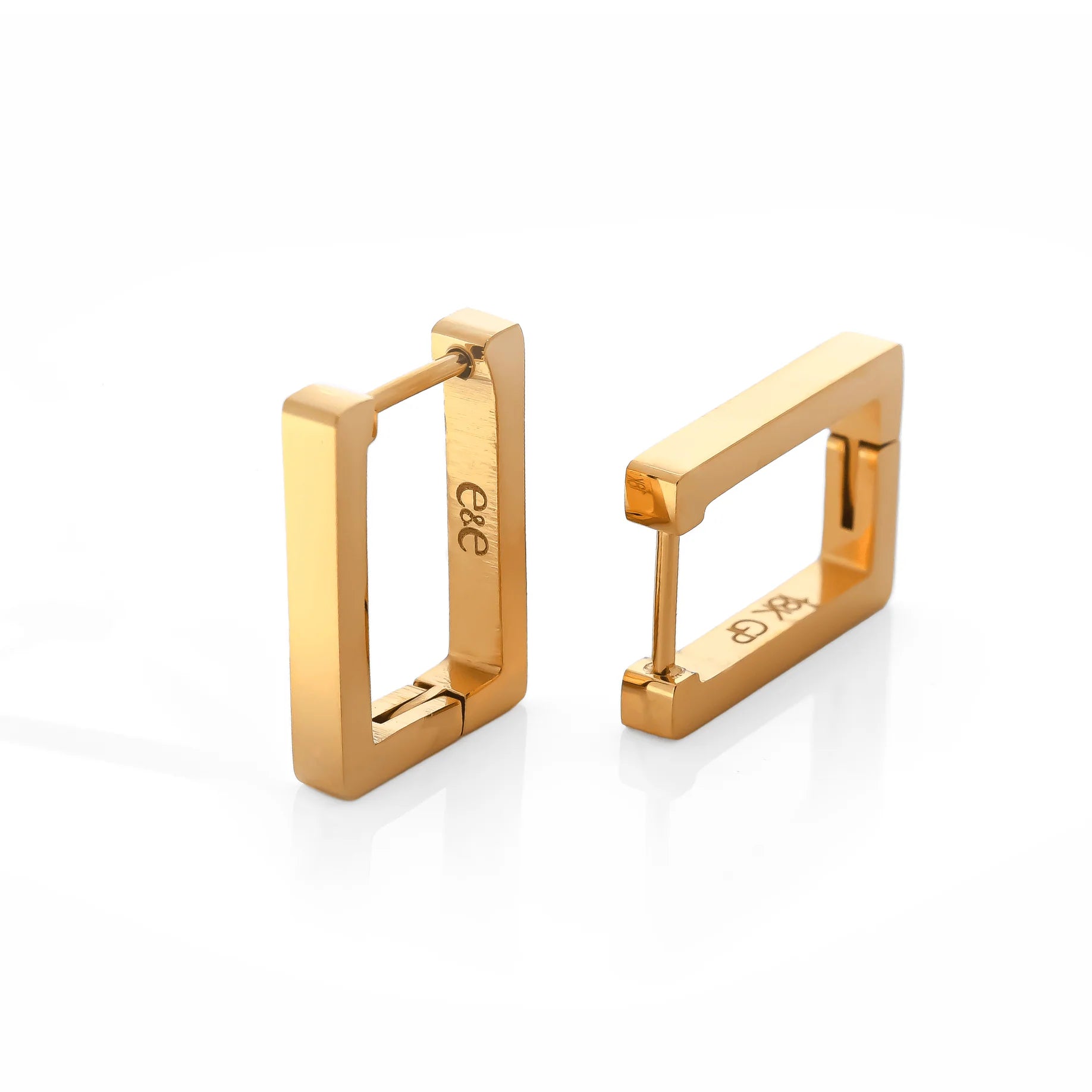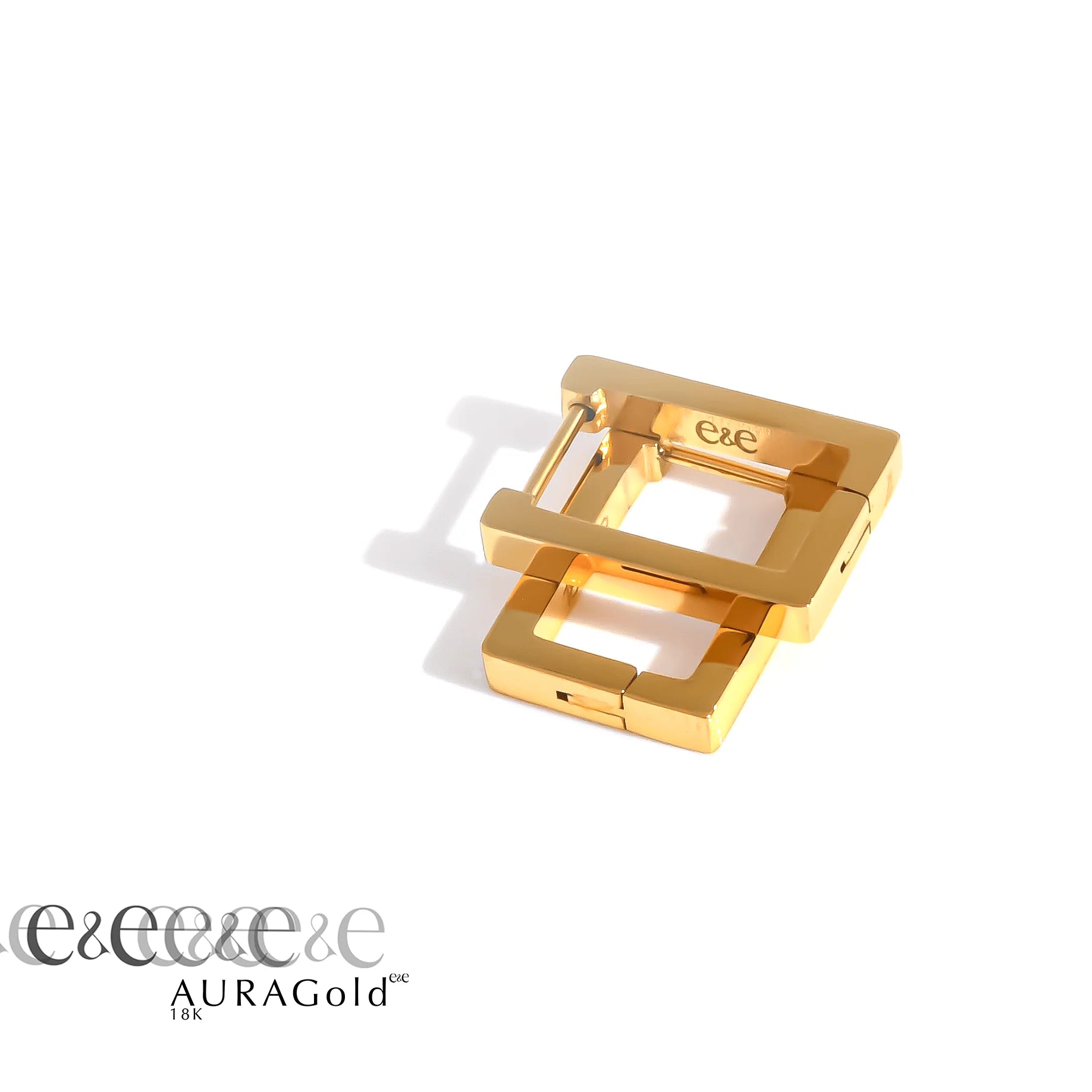 A classic modern rectangular silhouette presenting crisp lines and a slim profile. Lightweight, stackable, and finished in 18K AuraGold PVD on stainless steel with an easy click clasp. Super comfortable for all-day wear.