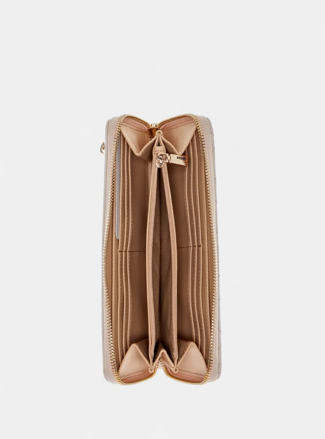 Carry your essentials in style with the Brown Jane Large Zip Around Wallet. Crafted from smooth PU, this sophisticated wallet features polished gold-tone hardware and a signature front logo clasp. Inside, it offers organized storage with 12 card slots, 4 slip pockets, and a zip pocket, while an exterior zip pocket adds extra functionality. Finished with a detachable wrist strap, it’s perfect for everyday use.