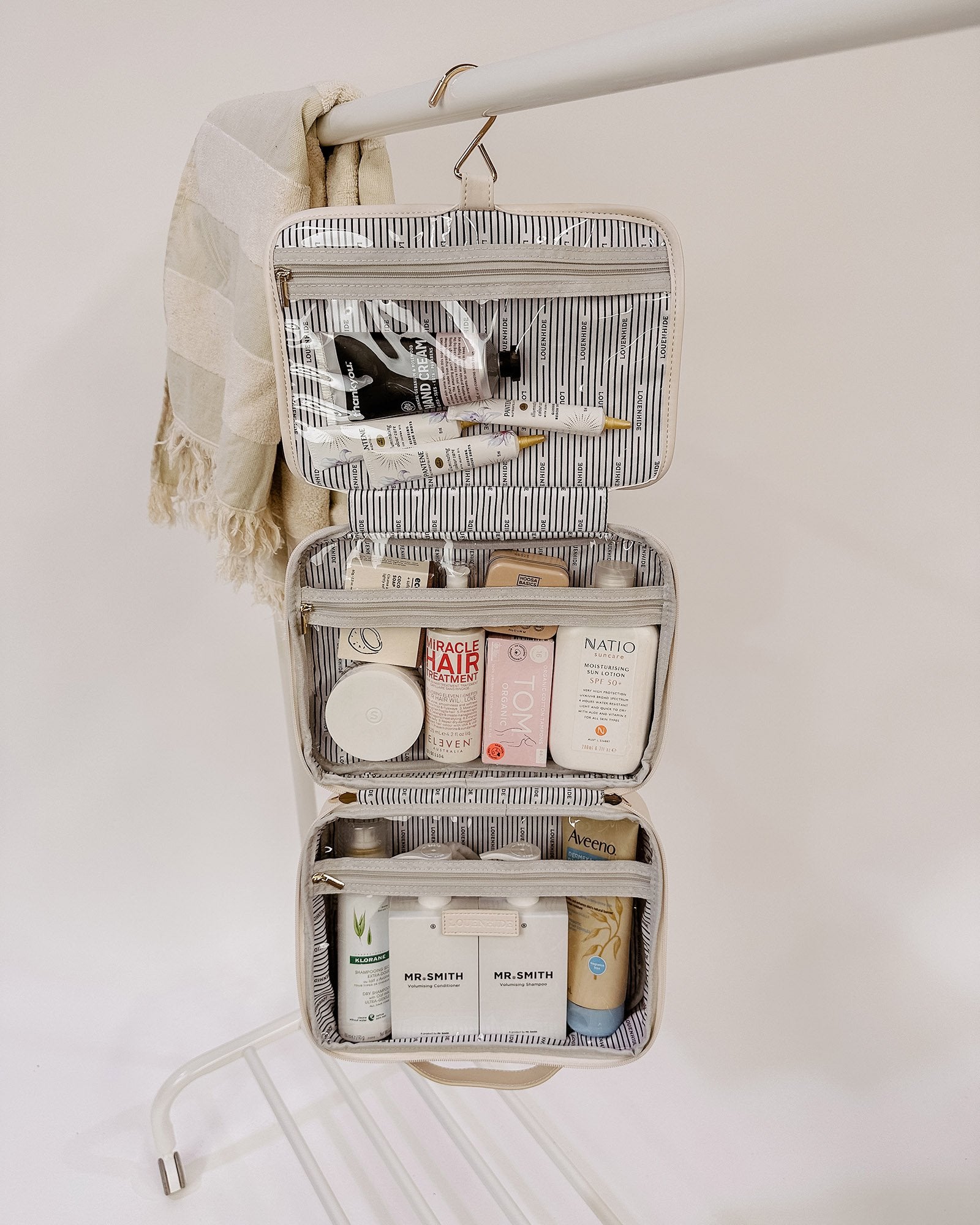 The Louenhide Maggie Lacey Quilted Cosmetic Bag Set are perfect for your next summer holiday. Featuring a subtle quilted chevron pattern, and curated form a durable, easy to clean vegan leather, Maggie's convenient hanging hook offers easy access to all your skincare essentials, while Lacey stores all your beauty essentials at your fingertips. Perfect for your carry-on and suitcase, take this cosmetic case set with you on weekend adventures or around the world!