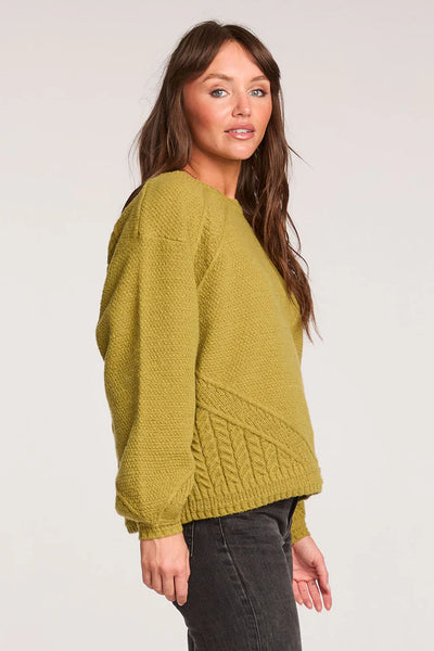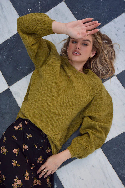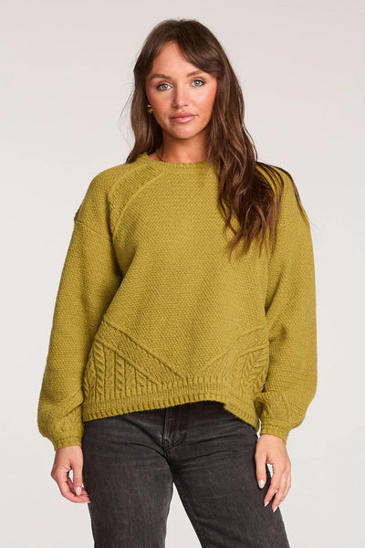 The Alderon Fern Sweater is a cozy staple featuring a slight scoop neck and a textured knit that adds subtle depth to its simple design.